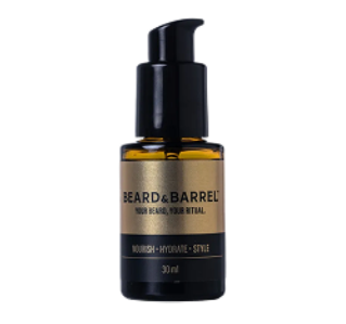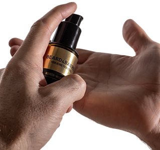 Dispense 4–5 drops of Beard & Barrel oil onto your palm.